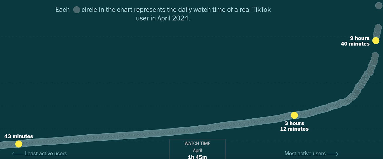 “I’ve never smoked or used drugs, so I don’t know what chemical addiction feels like, but I feel like I’m addicted to TikTok,” said Freilich, whose daily watch time on the app increased by more than 50 percent last year. “There are times when I know I should stop scrolling and get work done or go to sleep, but it’s so hard to stop, knowing the next swipe might bring me to a truly interesting video.”